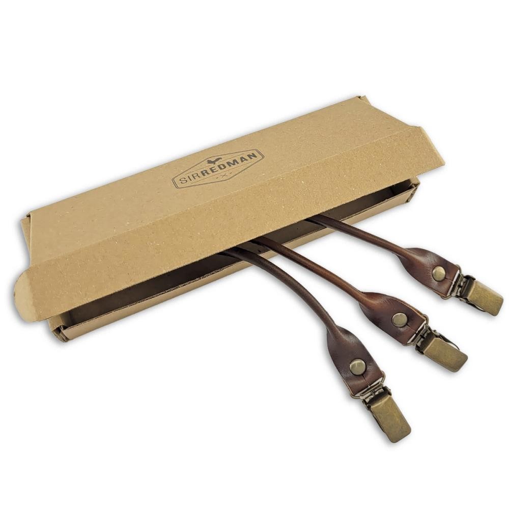 Sir Redman set bretellussen - bruin nerfleer - met antiek messing clips