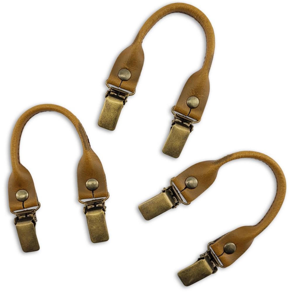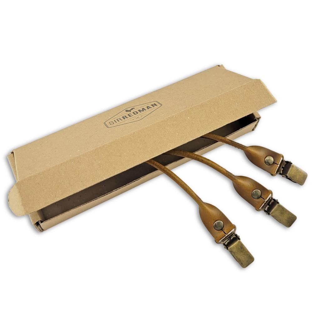 Sir Redman set  bretellussen - bruin leer - met antiek messing clips Sir Redman set  bretellussen - cognac leer - met antiek messing clips