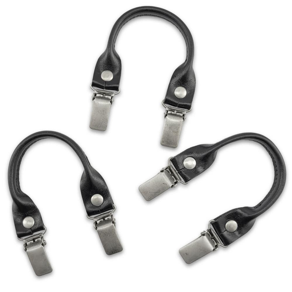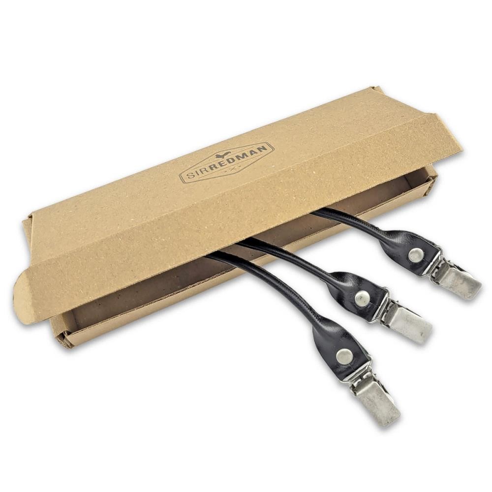Sir Redman set bretellussen - zwart nerfleer - met antiek zilveren clips