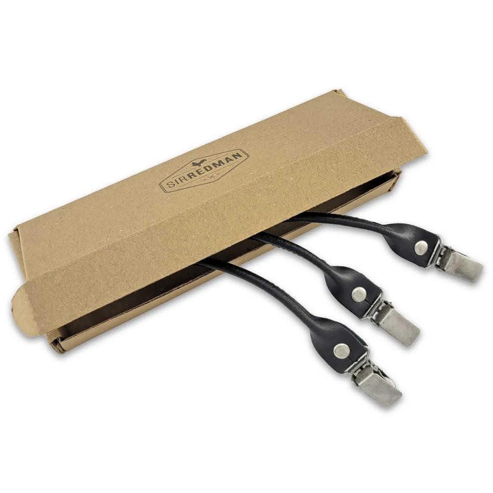 Sir Redman set bretellussen - cognac leer - met antiek zilveren clips Sir Redman set bretellussen - grijs leer - met antiek zilveren clips Sir Redman set bretellussen - zwart leer - met antiek zilveren clips