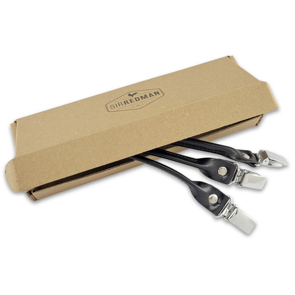 Sir Redman set bretellussen - zwart nerfleer - met zilveren clips