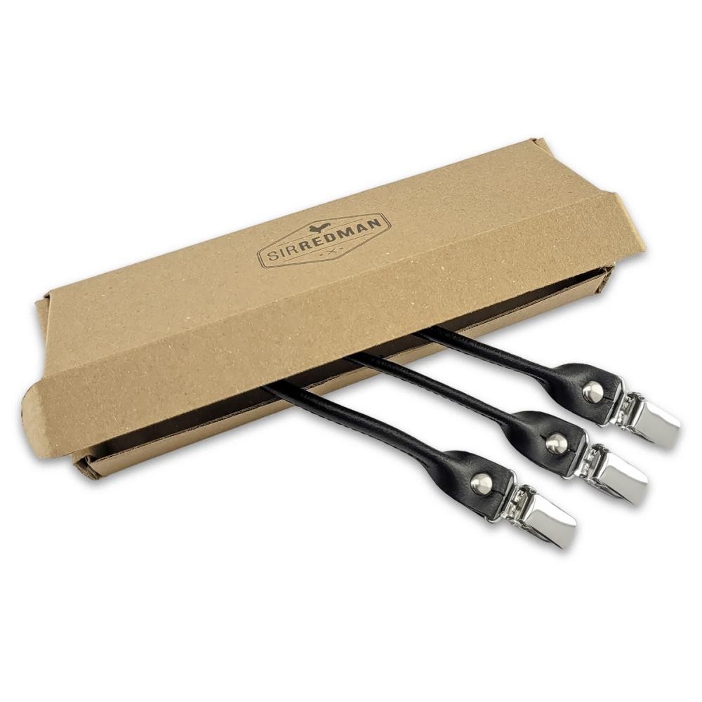 Sir Redman set bretellussen - bruin leer - met zilveren clips Sir Redman set bretellussen - cognac leer - met zilveren clips Sir Redman set bretellussen - grijs leer - met zilveren clips Sir Redman set bretellussen - zwart leer - met zilveren clips