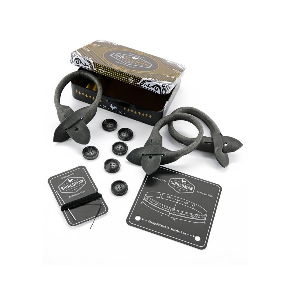 PROUDLY MADE BY HAND IN THE NETHERLANDS Sir Redman maakt zijn bretels volledig met de hand in eigen huis. Deze bretels zijn voorzien van de beste kwaliteit lederen lussen en stevige clips. Ook zijn ze in maat verstelbaar met schuifklemmen. Met het speciaal meegeleverde blikje met 6 knopen, naald & draad en een afstand bepaler om de knopen aan de binnenkant van je broek te bevestigen, is het heel eenvoudig om je bretels op de authentieke manier te dragen. Ben je daar niet zo van? Gebruik dan de hoogwaardige clips om deze aan je broekrand te klemmen. Ze zijn nl. los van elkaar afneembaar. Gebruik je de lussen niet? Bewaar ze dan in het blikje: handig toch?