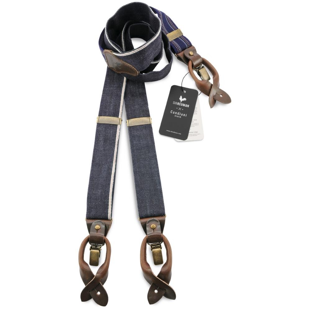 Sir Redman heeft een speciale collectie in samenwerking met Candiani Denim ontwikkeld. Een capsule collectie waar de échte denimheads en selvedge-freaks hun hart aan kunnen ophalen. De beste Italiaanse denim fabrics en het mooiste (chroomvrij gelooid) nerfleer, komen samen in een 5-tal met de hand gemaakte bretels. Duurzaam in Europa geproduceerd.