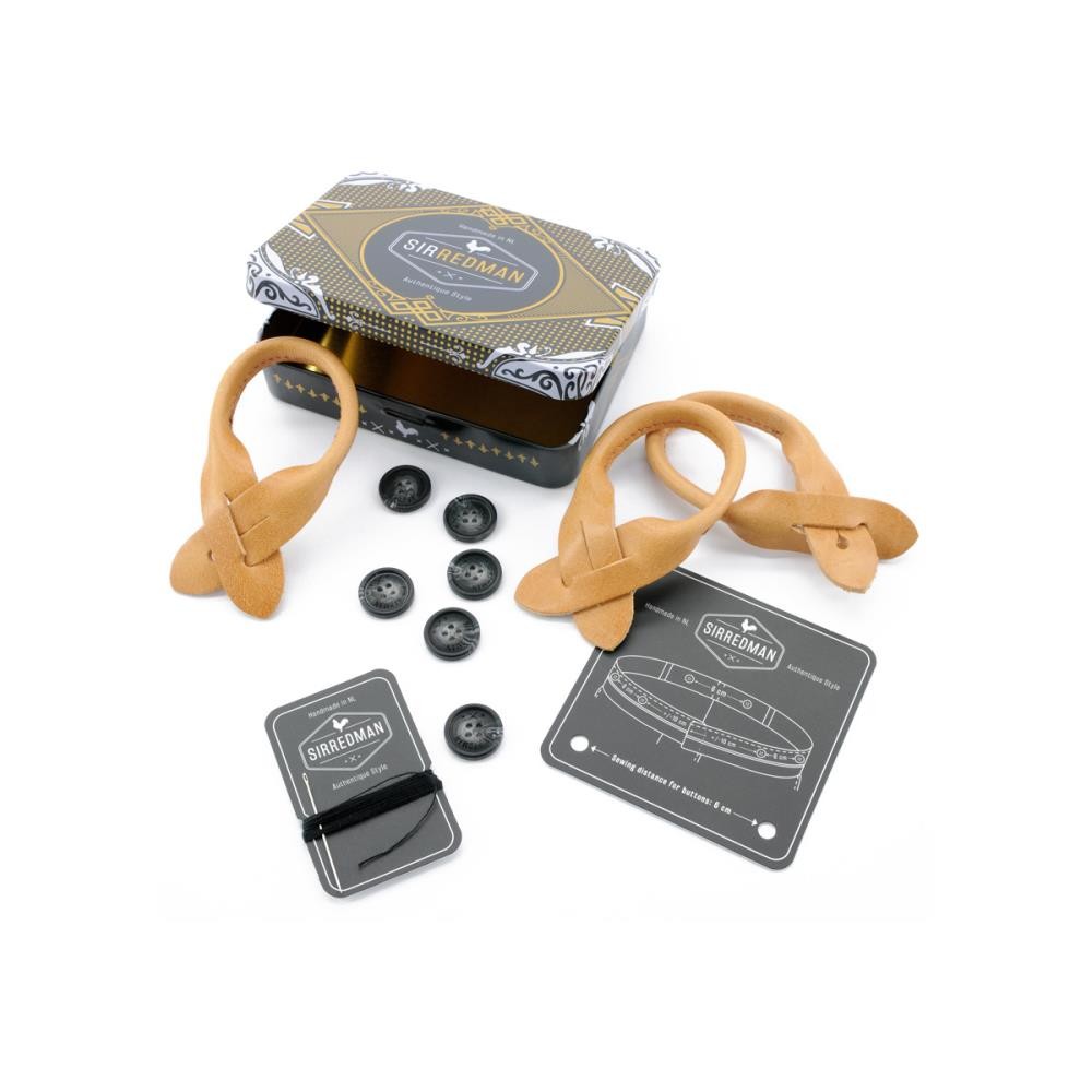 PROUDLY MADE BY HAND IN THE NETHERLANDS Sir Redman maakt zijn bretels volledig met de hand in eigen huis. Deze bretels zijn voorzien van de beste kwaliteit lederen lussen en stevige clips. Ook zijn ze in maat verstelbaar met schuifklemmen. Met het speciaal meegeleverde blikje met 6 knopen, naald & draad en een afstand bepaler om de knopen aan de binnenkant van je broek te bevestigen, is het heel eenvoudig om je bretels op de authentieke manier te dragen. Ben je daar niet zo van? Gebruik dan de hoogwaardige clips om deze aan je broekrand te klemmen. Ze zijn nl. los van elkaar afneembaar. Gebruik je de lussen niet? Bewaar ze dan in het blikje: handig toch?