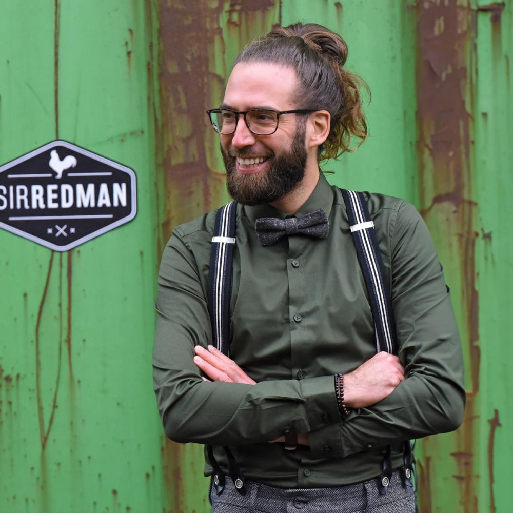 PROUDLY MADE BY HAND IN THE NETHERLANDS Sir Redman maakt zijn bretels volledig met de hand in eigen huis. Deze bretels zijn voorzien van de beste kwaliteit lederen lussen en stevige clips. Ook zijn ze in maat verstelbaar met schuifklemmen. Met het speciaal meegeleverde blikje met 6 knopen, naald & draad en een afstand bepaler om de knopen aan de binnenkant van je broek te bevestigen, is het heel eenvoudig om je bretels op de authentieke manier te dragen. Ben je daar niet zo van? Gebruik dan de hoogwaardige clips om deze aan je broekrand te klemmen. Ze zijn nl. los van elkaar afneembaar. Gebruik je de lussen niet? Bewaar ze dan in het blikje: handig toch?