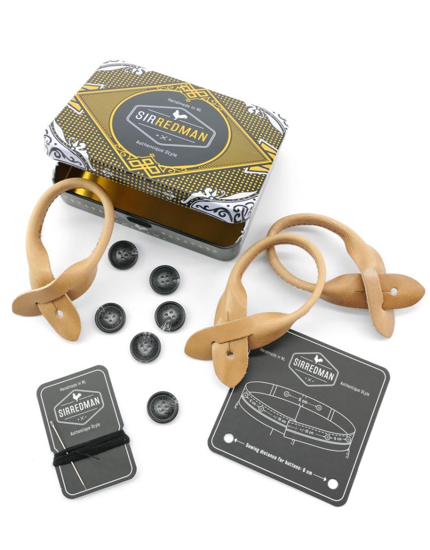 PROUDLY MADE BY HAND IN THE NETHERLANDS Sir Redman maakt zijn bretels volledig met de hand in eigen huis. Deze bretels zijn voorzien van de beste kwaliteit lederen lussen en stevige clips. Ook zijn ze in maat verstelbaar met schuifklemmen. Met het speciaal meegeleverde blikje met 6 knopen, naald & draad en een afstand bepaler om de knopen aan de binnenkant van je broek te bevestigen, is het heel eenvoudig om je bretels op de authentieke manier te dragen. Ben je daar niet zo van? Gebruik dan de hoogwaardige clips om deze aan je broekrand te klemmen. Ze zijn nl. los van elkaar afneembaar. Gebruik je de lussen niet? Bewaar ze dan in het blikje: handig toch?