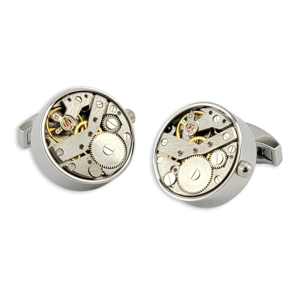 de movement manchetknopen bevatten het binnenwerk van een uurwerk. Ze zijn op te draaien, waardoor de tandwielen echt gaan bewegen.