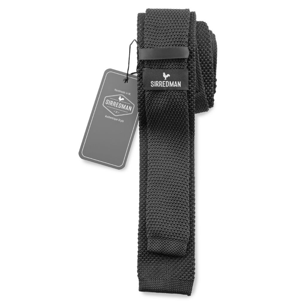 deze gebreide stropdas is recht afgewerkt in plaats van in een punt zoals bij traditionele stropdassen.