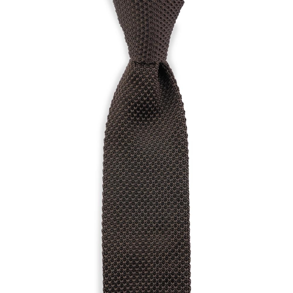 deze gebreide stropdas is recht afgewerkt in plaats van in een punt zoals bij traditionele stropdassen.