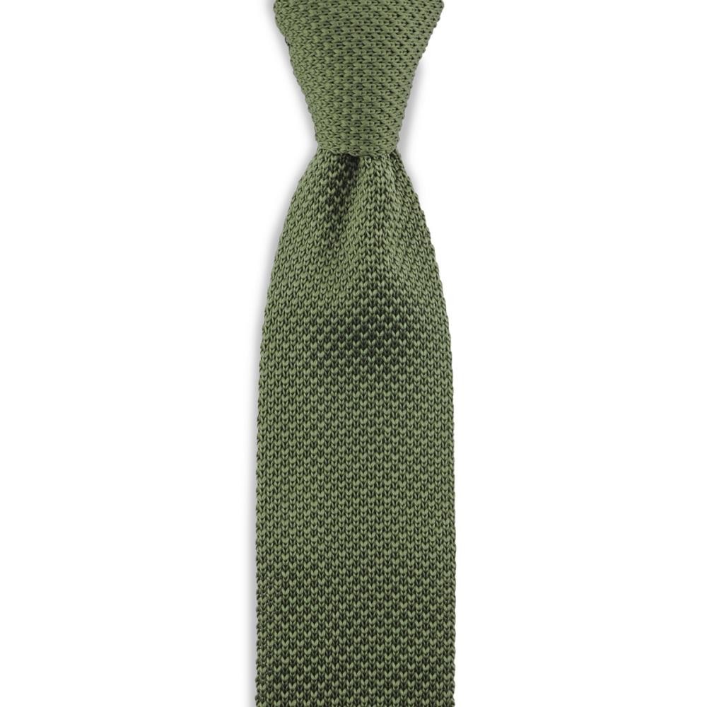 deze gebreide stropdas is recht afgewerkt in plaats van in een punt zoals bij traditionele stropdassen.