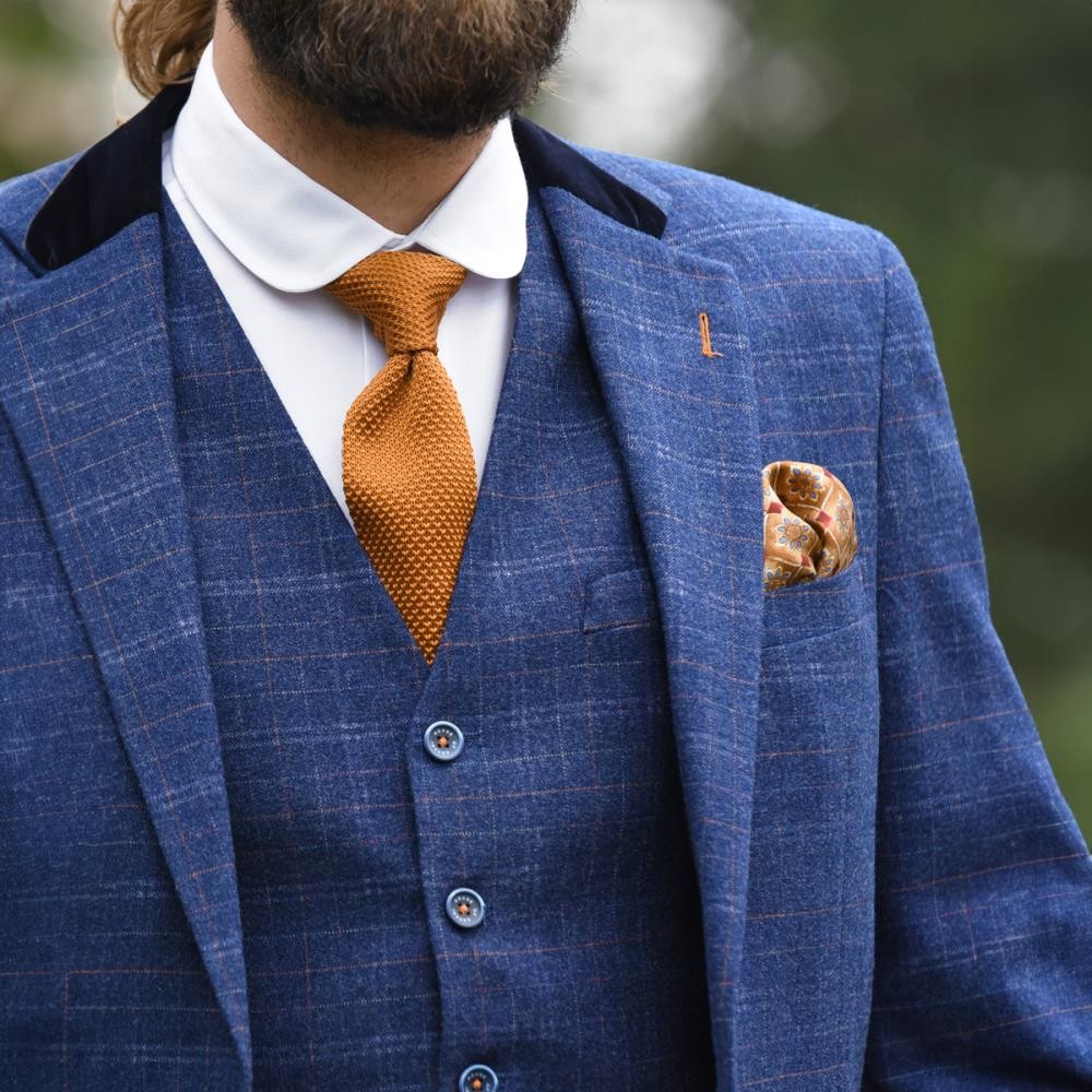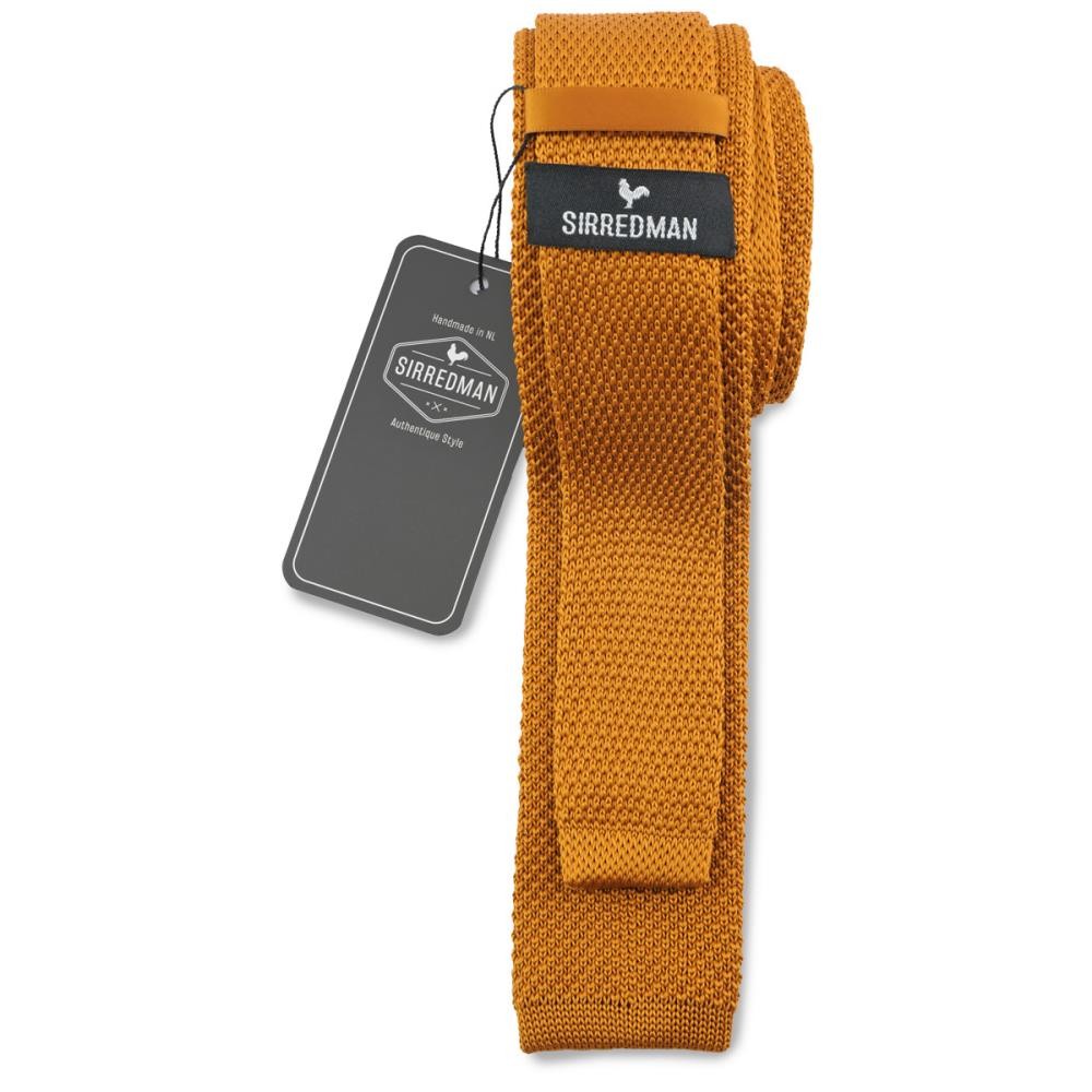 deze gebreide stropdas is recht afgewerkt in plaats van in een punt zoals bij traditionele stropdassen.