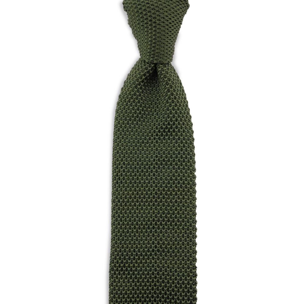 deze gebreide stropdas is recht afgewerkt in plaats van in een punt zoals bij traditionele stropdassen.